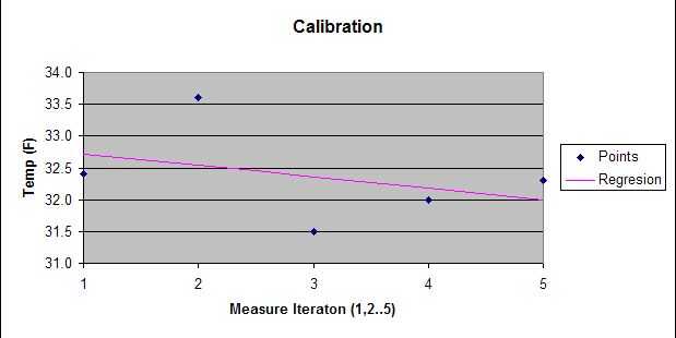 Para los efectos del análisis, se supone que el instrumento es exacto. Desviación de 32 grados F puede atribuirse a otras "imperfecciones" en el agua además de errores humanos etc. y minerales. R horrible cuadrado valor puede atribuirse al tamaño de muestra muy bajo (un ideal r cuadrado valor es 1 o muy cercano a 1).