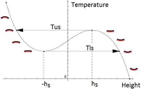 A bajas temperaturas, bimetálicos cáscaras superficiales tienen forma cóncava que luego se ajusta a una forma convexa a altas temperaturas. Durante este proceso, la cáscara puede ejercer una gran fuerza suficiente para activar un interruptor o hacer un contacto eléctrico mecánicamente. Como es habitual en los cambios de fase discontinua, cáscaras superficiales muestran comportamiento de histéresis considerable (Fig. 3). Con materiales adecuados y que de forma correcta, las temperaturas de cierre superior e inferior, Tls y Tus, respectivamente, se pueden ajustar en un amplio rango.