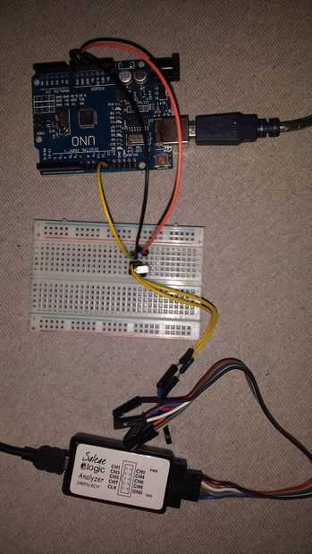 GND (ONU) va a GND(VS1838B) y GND(analyzer)