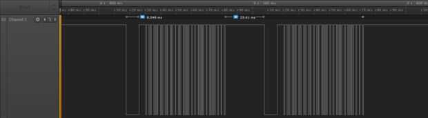 Como se puede ver el resultado consiste en dos ráfagas con una entre retraso de ms de 25.