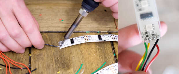 Soldar las tiras entre sí, asegurándose de que cada salida se conecta a la entrada respectiva.