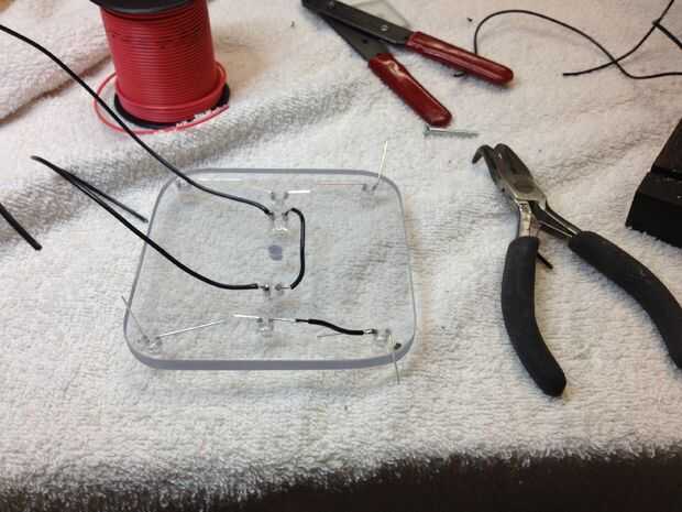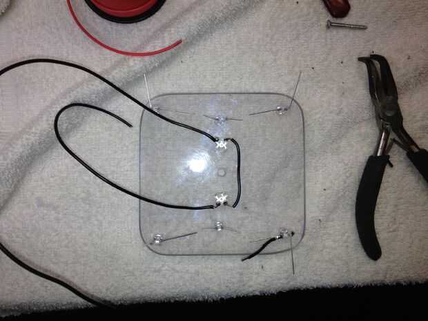 Entonces terminé de cableado hasta las restantes luces y circuitos con el gancho encima del alambre. Entonces viola - un analizador de estado de ánimo va a cambiar colores como hacer y romper los circuitos!