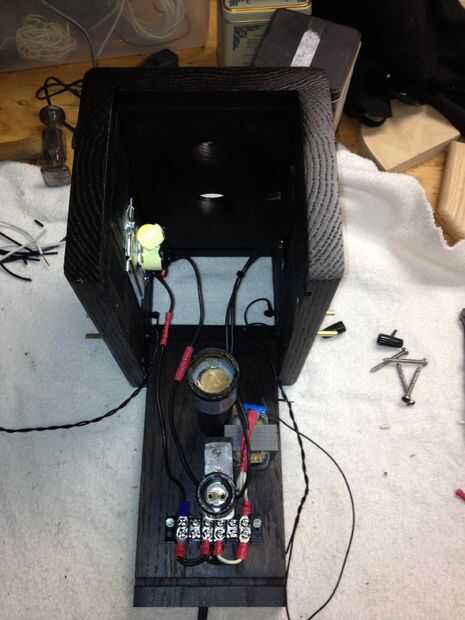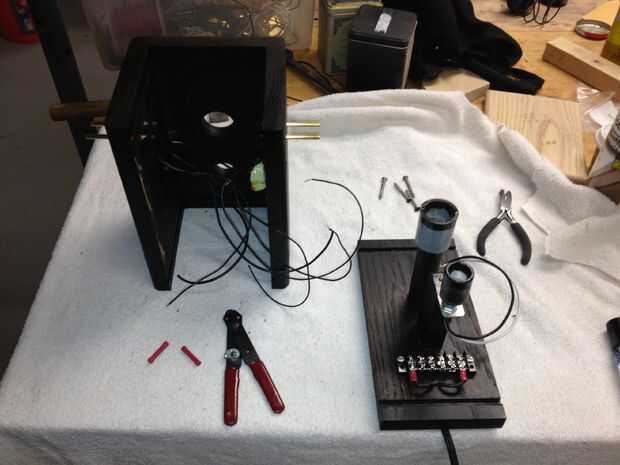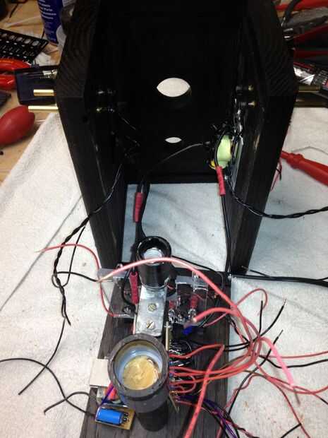 Los componentes internos muestran que el apoyo puestos para el radiómetro que se ajustaron en un acoplamiento de conducto eléctrico de PVC y el cargo de conexión de la lámpara. Luego usé el cargo para apoyar la placa de circuito y los paneles de la luz.