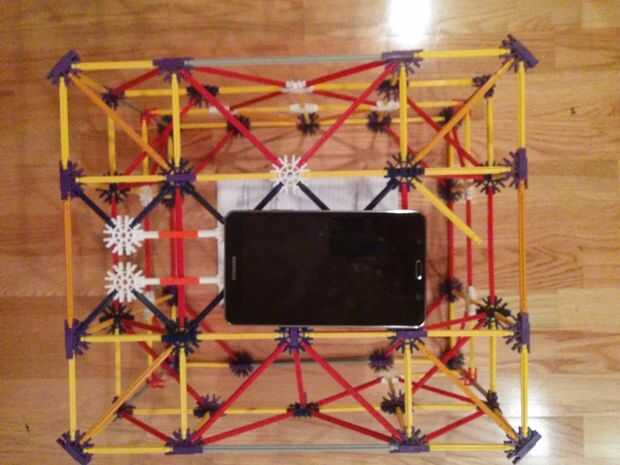 Así que un día que decidí suficiente bastaba y sacó mi K'NEX! Construido una cosa que podría sostener mi tablet y teléfono para que pudieran "scan" (a.k.a tomar fotos) de mis anotaciones y subirlos a Evernote.