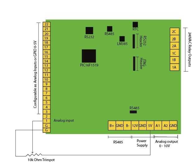 Conecte el Raspberry Pi a PI PIC y se aplican 5V y GND a la PICPI también alambre hasta una 10k Trimpot con lleva como se muestra en la segunda imagen