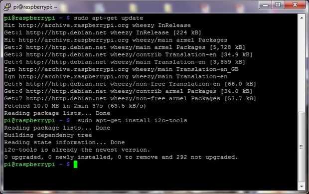 sudo apt-get update luego instalar las herramientas de i2c usando el comando