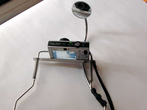Prueba el espejo por la cámara de corte al titular de la armónica y con los dedos para sostener el espejo.