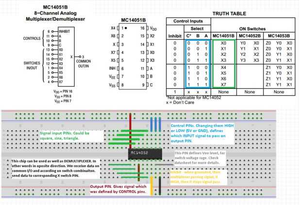 Multiplexor analógico le permite pasar datos de pocos pines en uno.