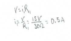 3. Usando la ley de Ohm, V = i * R, calcular la corriente que fluye a través del cable donde V es el voltaje en el nodo, y R es la resistencia en el cable (que puede ser una serie de elementos, en cuyo caso suman las resistencias, o un solo elemento).