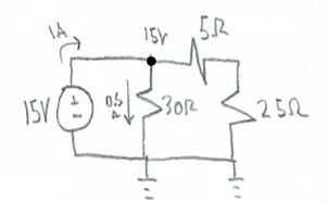 1. Ahora que tienes esta nueva corriente, escribe una flecha en su circuito original que fluye desde el nodo hacia la tierra, también escribo el valor calculado.