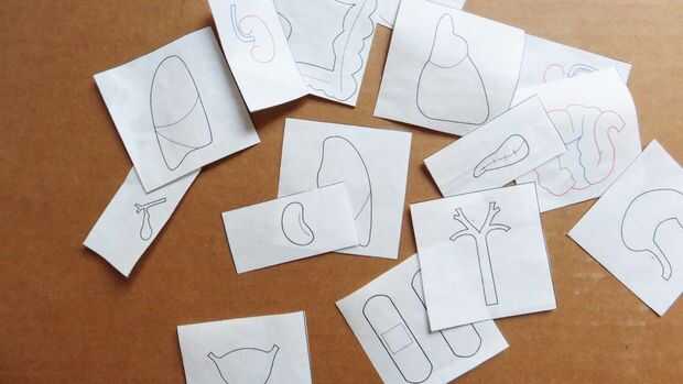 2. Cuando se imprime, asegúrese de imprimir sobre el papel de congelador y no el papel de la impresora. Imprimir una hoja con los intestinos y una hoja con un animal.