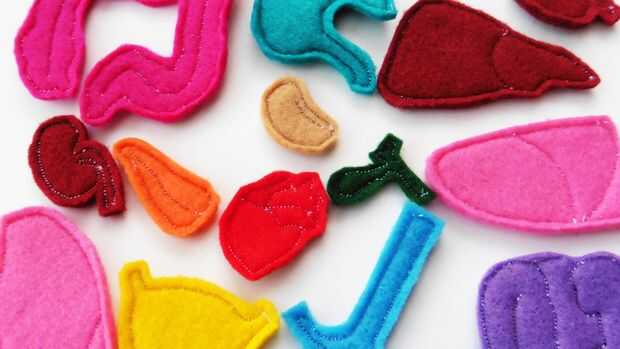 • Cuando haya terminado de coser, retire el papel de congelador y cortar cada órgano, asegurándose de no cortar demasiado cerca de la rosca.
