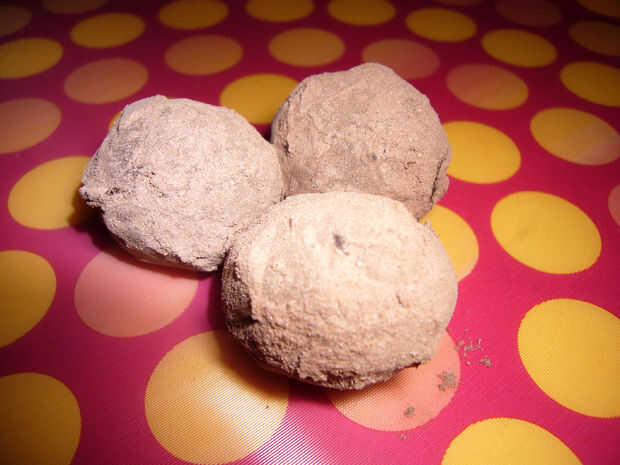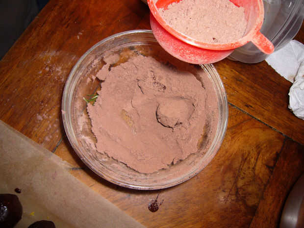 Capa de la trufa con una mezcla de cacao en polvo, azúcar glas y canela (paso 8).