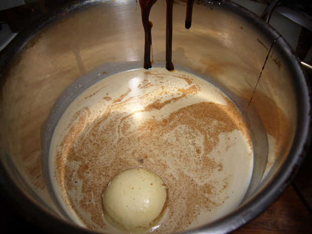 * Algunas recetas requieren el jengibre rallado en la crema para hasta una hora después de quemaduras. Nuestro no eran bastante 'jengibre' bastante, así que esto podría darle un intento. Probablemente le gustaría llevar la crema a hervir de nuevo o usar un baño de agua caliente porque la crema no será lo suficientemente caliente como para derretir el chocolate. Alternativamente podría añadir un poco de jengibre en polvo o confitado en jengibre y deja en el ganache en lugar de filtrar.