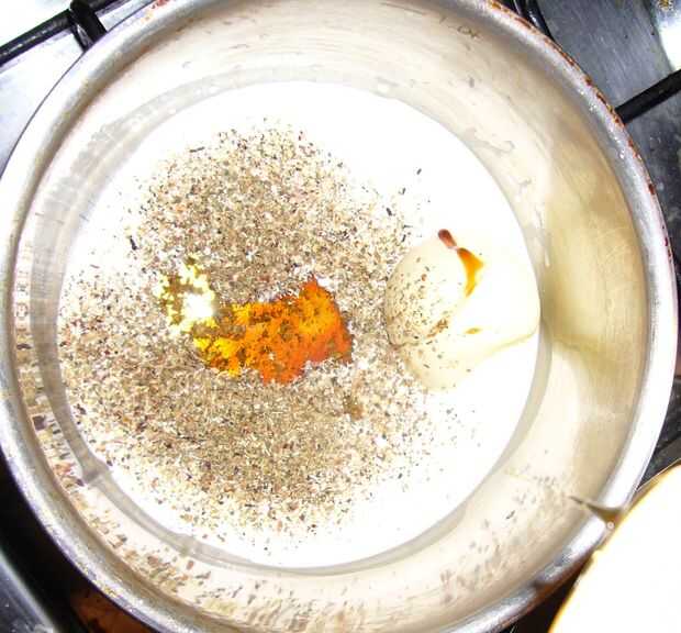 Abra la bolsa de té de jazmín y verter el contenido en la crema. Una vez que la crema comience a hervir en el paso 2, retirar del fuego y deja la mezcla escarpada para un extra de 5 minutos. Volver la sartén a fuego lento y poner a hervir otra vez. Colar que las hojas de té en el paso 3.