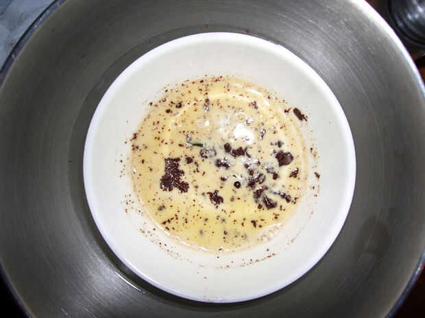 Vierta la mezcla de la crema hirvienda sobre el chocolate picado.