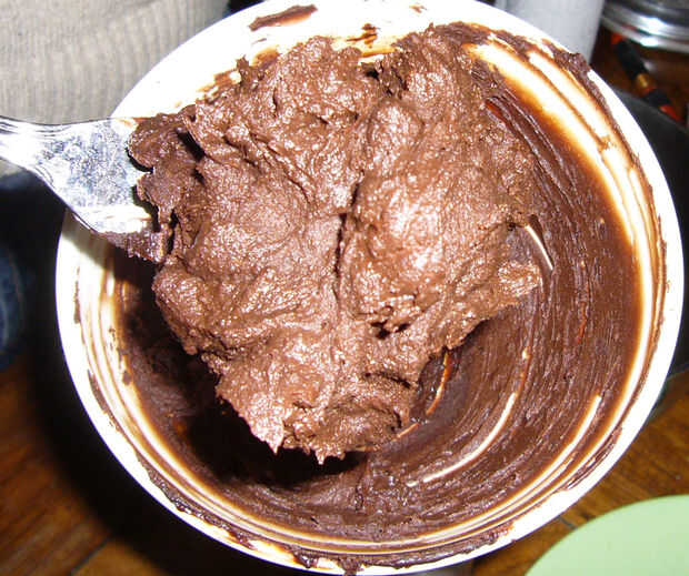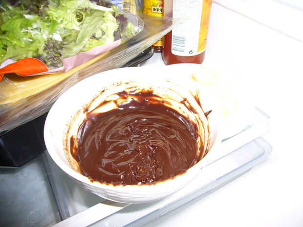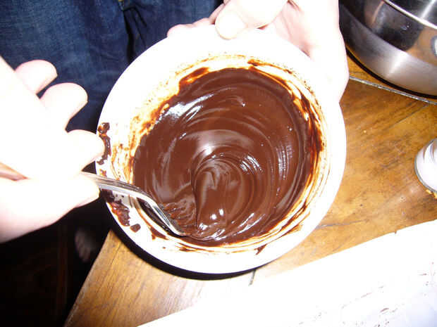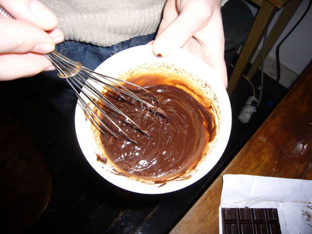 Cuando el chocolate ha impregnado durante 5 minutos, revuelva hasta que esté suave aterciopelado (cuadro #1).