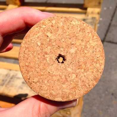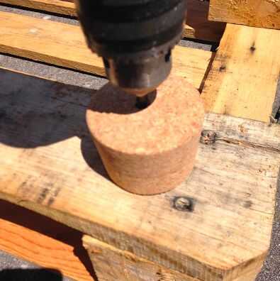 Mientras que sostiene el corcho constante, suave taladro a través del centro. Esto será muy fácil, para no poner demasiada presión sobre el taladro.