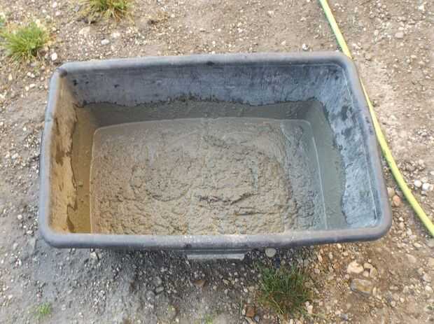 Luego mezclé la mezcla de hormigón y el agua bien, hasta que fue homogénea.