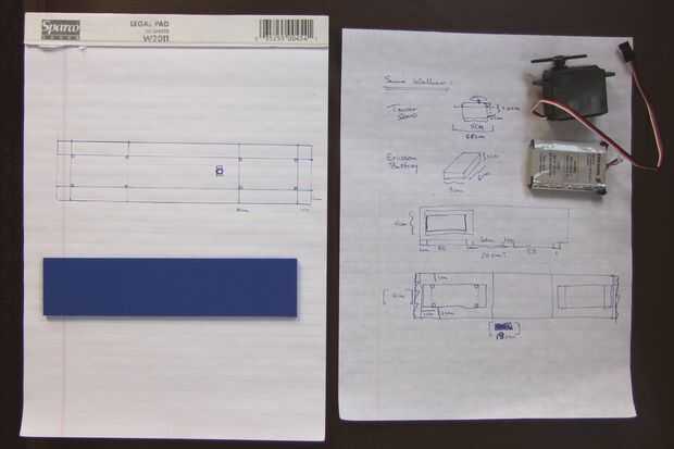 Aquí, se me ven medir las partes, haciendo un bosquejo para el marco y luego agarrar una regla para hacer una plantilla de papel. Usé la plantilla como guía para marcar con un lápiz donde que sería perforar agujeros en el Sintra.