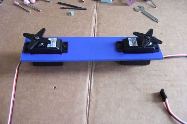 Después de cortar los agujeros, prueba de ajuste de los motores solo para ver cómo funcionaba. (Un poco demasiado, pero consiguió el largo justo.)