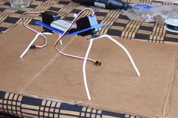 La broca sólo crítica es el centro de gravedad bastante en el medio para que camina derecho. Idealmente, cuando un pata delantera está en el aire, las patas traseras girando volcará el bot hacia adelante sobre la pierna delantera de alta/adelante, que luego hará la marcha a pie. Verás lo que quiero decir en un video o dos subir.