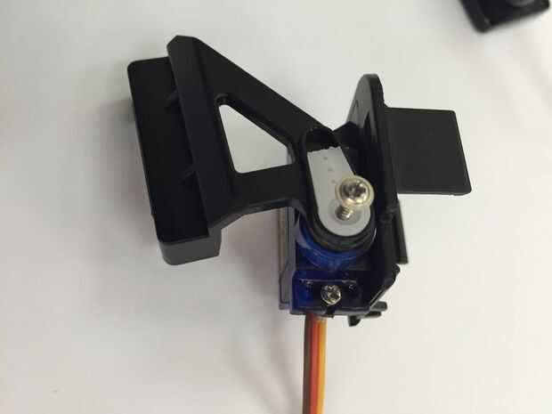3) tomar el servo motor con la pieza superior unida y pop en el brazo de plástico conectada a la pieza lateral.