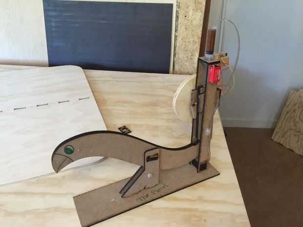 Ya terminado y listo para usar la grúa de loro. La resistencia creada por el surringes, es demasiado para la grúa mover junto con el cigüeñal, que se pega a la surringe inferior. Esto podría prevenirse si se utiliza un motor con mayor torque. No sería funcional, pero es hermoso!