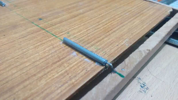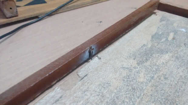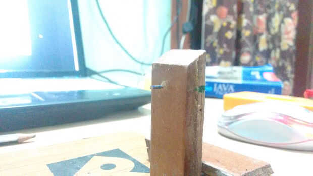 y añadir un clavo a cada una, de tal manera que se aline a la misma altura desde la base. También cortar alguna pieza extra de madera para añadir soporte a los pilares...