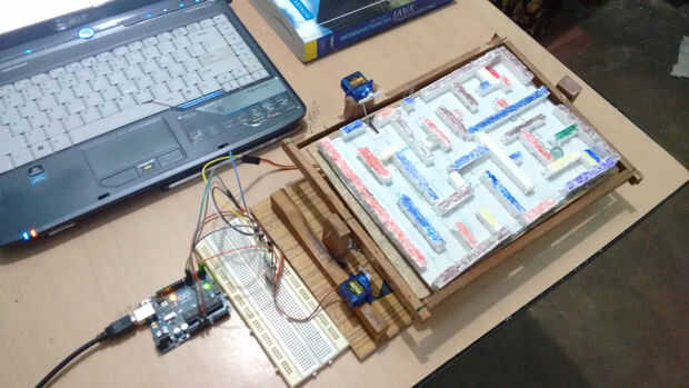 hice el laberinto usando thermocol y un tablero de tarjeta.