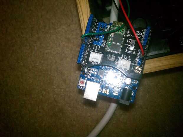 Bluetooth Shield para Arduino - http://www.amazon.com/gp/product/B007BYI172/ref=oh_details_o04_s00_i00 (las antenas de BT regulares funcionará también)