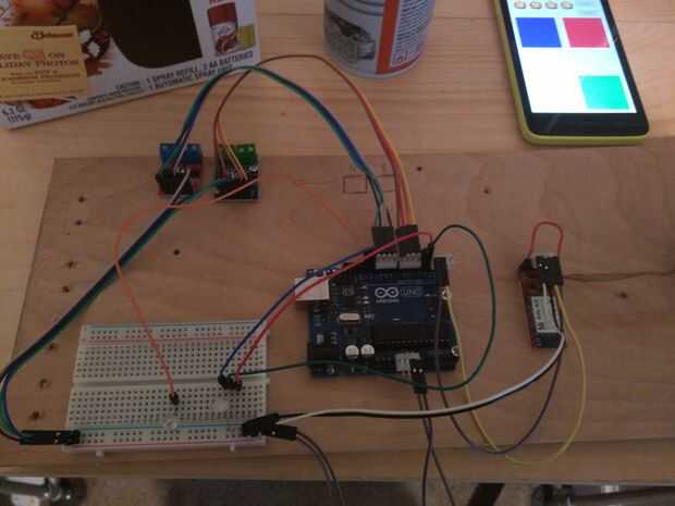 Los puentes de H se pueden controlar con PWM usando AnalogWrite (PIN, 0-255) para controlar la velocidad del motor, pero para este proyecto que no tiene que preocuparse acerca de PWM y pueden conectarse a cualquier pines de I/O en el Arduino. Tome nota de que los pernos que conectado en el puente H para el Arduino, como tendremos que hacer referencia a estos pines en el código en el paso siguiente. Usé carriles de la energía de un protoboard para distribuir el poder entre el módulo de Bluetooth y los puentes de H y también fue capaz de conectar LEDs así.