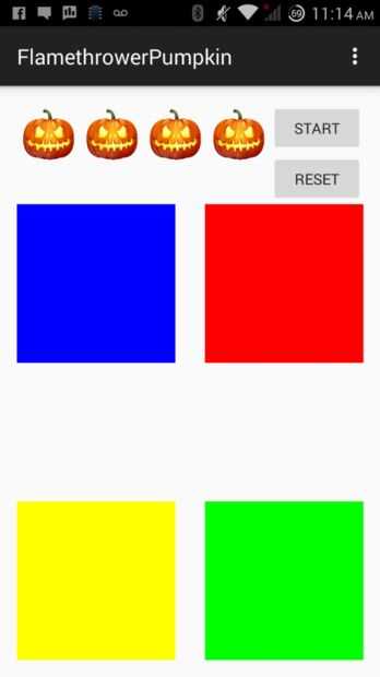 Esta aplicación es todavía un trabajo en progreso pero le permite individualmente encender/apagar cada calabaza, así como un completo juego de Simon Says. La biblioteca de Amarino funciona mediante el envío de un par en el módulo de Bluetooth. Simplemente enviar un char/bandera (a, b, c, d) con un valor de 1 o 0 para activar el motor encendido respetuosamente. Simon Says funciona de manera similar. Cada vuelta genera un número aleatorio entre 1 y 4 y añadir a una matriz y enviar el arreglo a Arduino. El código de Arduino recorre el código y enciende/apaga la calabaza especificada. Toda la lógica se controla en el dispositivo Android, solo envía los datos a Arduino. Hay un módulo de usar Android en el código de Android también, pero ninguna garantía de que funciona.