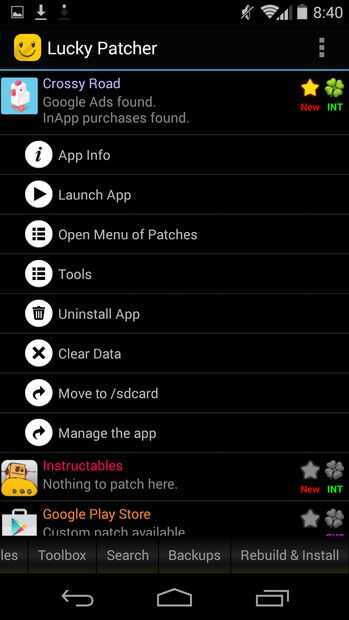 * Pulse en la aplicación que desea editar. * seleccionar "Abrir menú de parches". * Apoyo a parche inApp y lati... * aplicar * después de termine de parchear, iniciar la aplicación