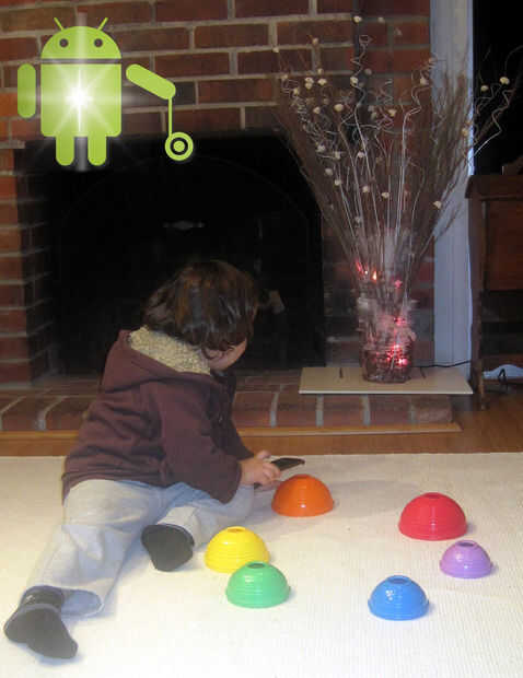 El teléfono Android está controlando una tira de LED en el vaso usando una tabla de IOIO con Bluetooth. En este ejemplo, el teléfono Android ejecuta una aplicación que obtiene los valores de color de la cámara a bordo y a su vez coincide con los colores de la tira LED. (Yo y Ytai) especie de corrimos fuera de tiempo en este proyecto pero con el código de ejemplo, puede ampliarse fácilmente para hacer otras cosas. Aquí le damos algunas ideas que no pudimos: