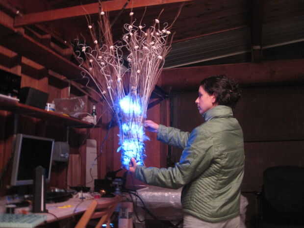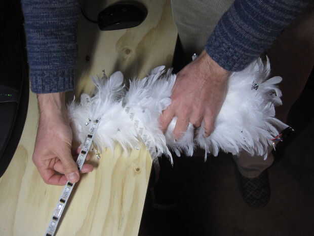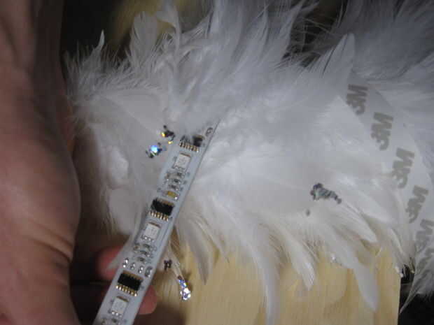 Con la electrónica que trabaja, ahora es el momento de instalar la tira de LED en su factor de forma de elección y también ocultar la Junta IOIO en algún lugar de allí. Si es una instalación permanente, entonces usted quiere soldar los cables de la tira de LED directamente a la Junta IOIO o si es temporal, luego de la soldadura de algunos pernos de cabecera en su tabla IOIO y conectar en la regleta LED usando cables de puente.