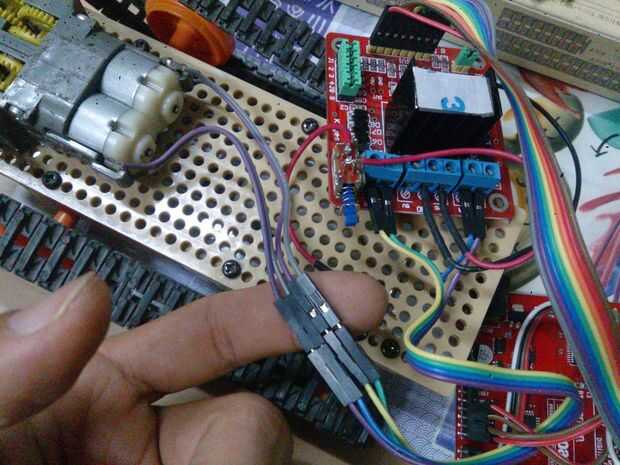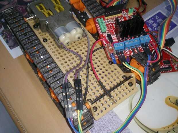 Para los puntos 1 y 2, prueba más tarde cuando las ruedas mueven de la manera opuesta que el pulsador, es necesario intercambiar los cables terminales. Por eso es mujer encabezados en los bornes de los motores, de la soldadura para que fácilmente podemos intercambiarlos.