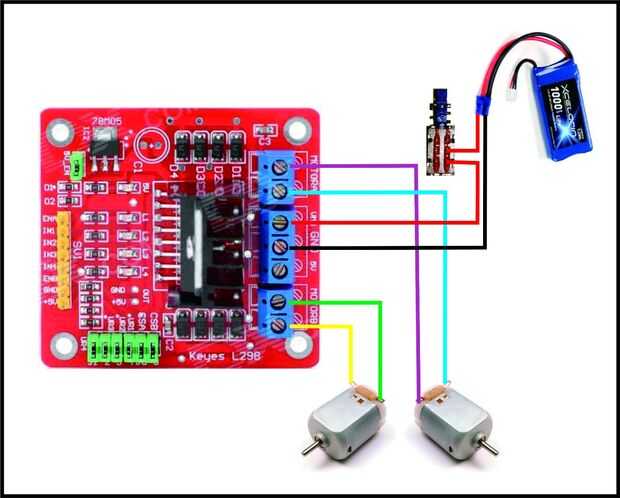 - Púrpura y azul cables de Motor Driver MOTOR-A a bornes del Motor derecho.