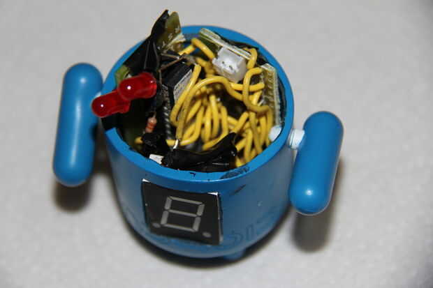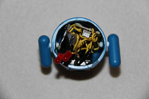Ahora, de la curva gire todos los cables, todos los de las juntas y luego poner los LEDs en los ojos (los que te Dremeled hacia fuera).