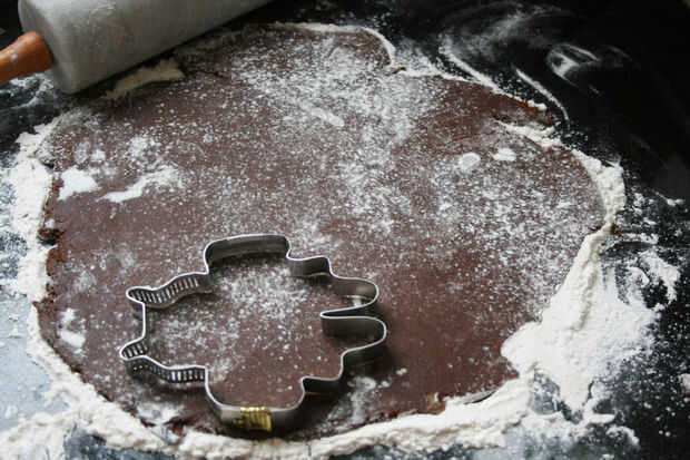 Después de que la masa se enfría, rodar hacia fuera sobre una superficie bien enharinada. La masa es suave y pegajosa para soportar la cantidad de harina que llevará a estirar uniformemente.