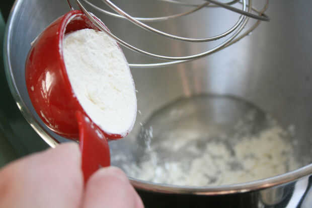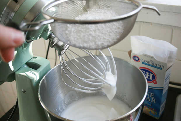 • Tamice en 4 tazas de azúcar impalpable y batir hasta que el hielo alcanza la consistencia deseada.