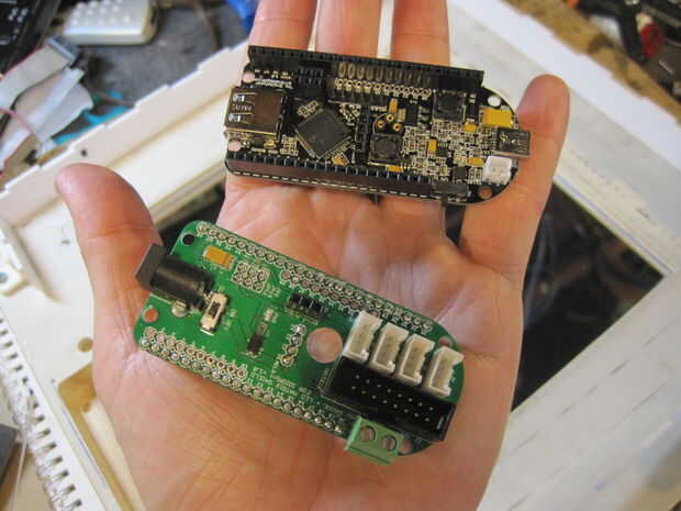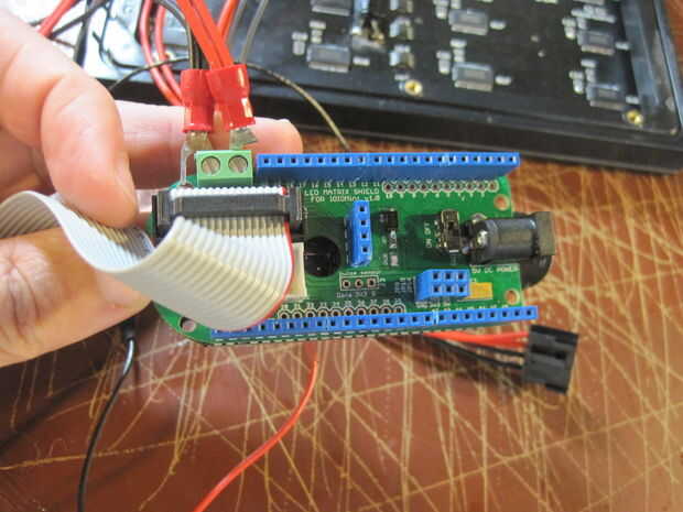 1. Enchufe el shield de matriz de LED RGB en la Junta IOIOMint o Droidalyzer IOIO