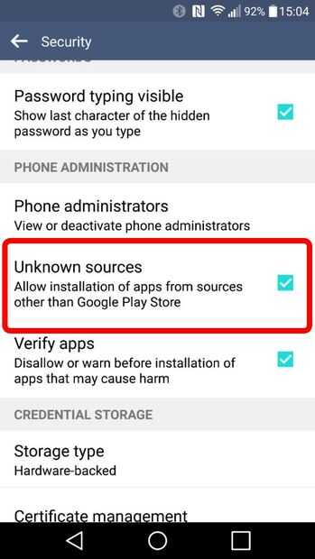 2) si está familiarizado con Android probablemente ya habilitado fuentes desconocidas. De todos modos ir a ajustes > Seguridad > teléfono administración y garrapatas (habilitar) en fuentes desconocidas. Tenga en cuenta que la ruta podría ser diferente para cada dispositivo.