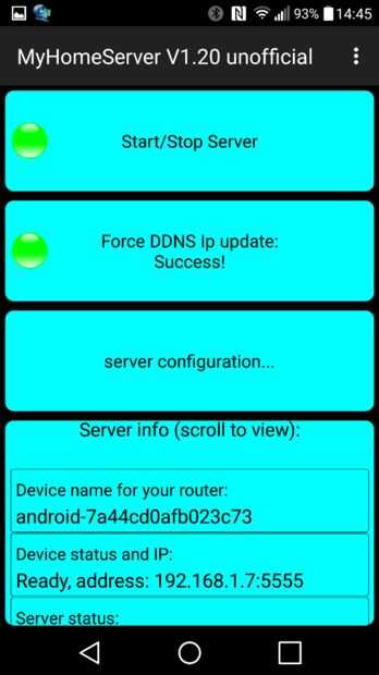 1) iniciar la aplicación y asegúrese de que el servidor se está ejecutando: el primer botón grande en la parte superior debe mostrar un rojo y verde cuando se inicia el servidor cuando el servidor se detuvo.