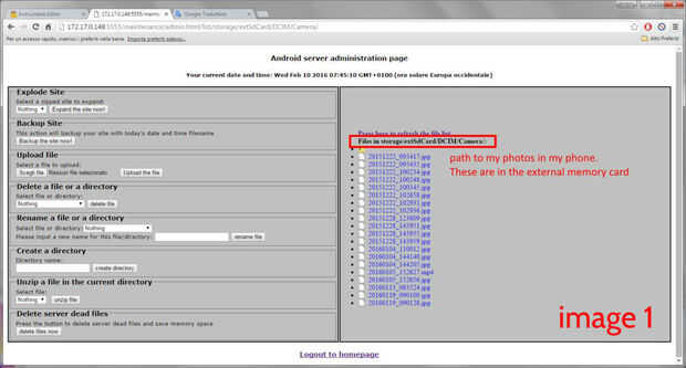 Ahora trate de navegar a la carpeta DCIM/Camera para ver algunas de tus fotos (estas pueden ser en la memoria interna o la tarjeta externa del SD del dispositivo dependiendo de su configuración). Antes de hacer esto Asegúrese de que está desactivada la configuraciónlimitar la exploración de la carpeta de MyHomeServer (véase Step2) de lo contrario podrá no explorar esa carpeta.