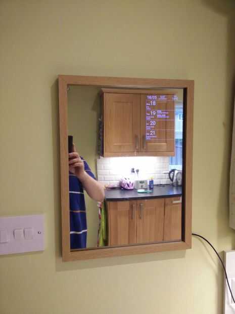 Decidimos que necesitábamos un espejo en nuestra cocina, y también era consciente de que mi familia utiliza sus teléfonos inteligentes para comprobar el tiempo, calendario de citas etc. antes de llegar a los niños listos y dirigirse hacia fuera para el día.