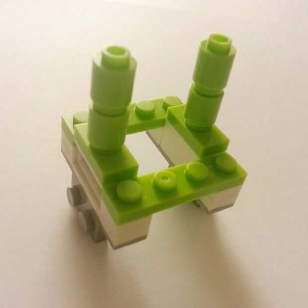 3. Pila de dos 1 x 1 verde bloques encima de la otra y coloque en ambos lados. Aquellos serán los antennaes.