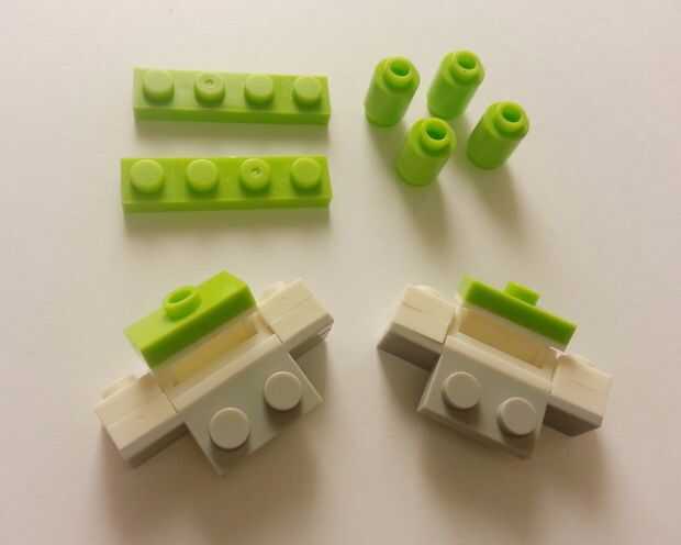 1. Conecte los dos conjuntos de bloques por adjunta un bloque Lego verde 1 x 4 a los lados derecho e izquierdos.