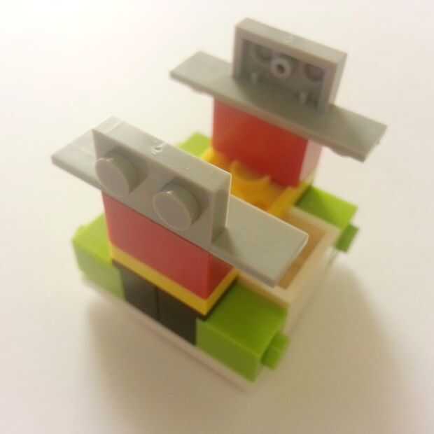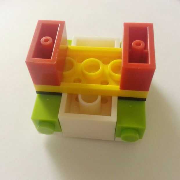 5. Coloque los dos Legos rojos en los bordes derecho e izquierdos del Lego amarillo.