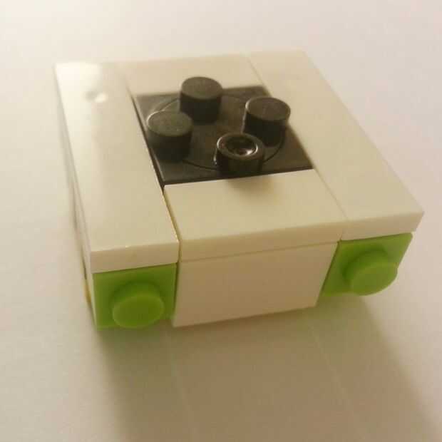 3. Poner el bloque de Lego negro en el centro del blanco Lego.